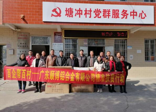 為弘揚(yáng)博愛精神,關(guān)愛貧困家庭,積極響應(yīng)政府“百企幫百村”精準(zhǔn)扶貧行動,公司成立了扶貧行動小組。2019年12月7日,廣東順博公司扶貧行動小組一行6人前往連南瑤族自治縣三江鎮(zhèn)塘沖村開展專項(xiàng)扶貧工作。